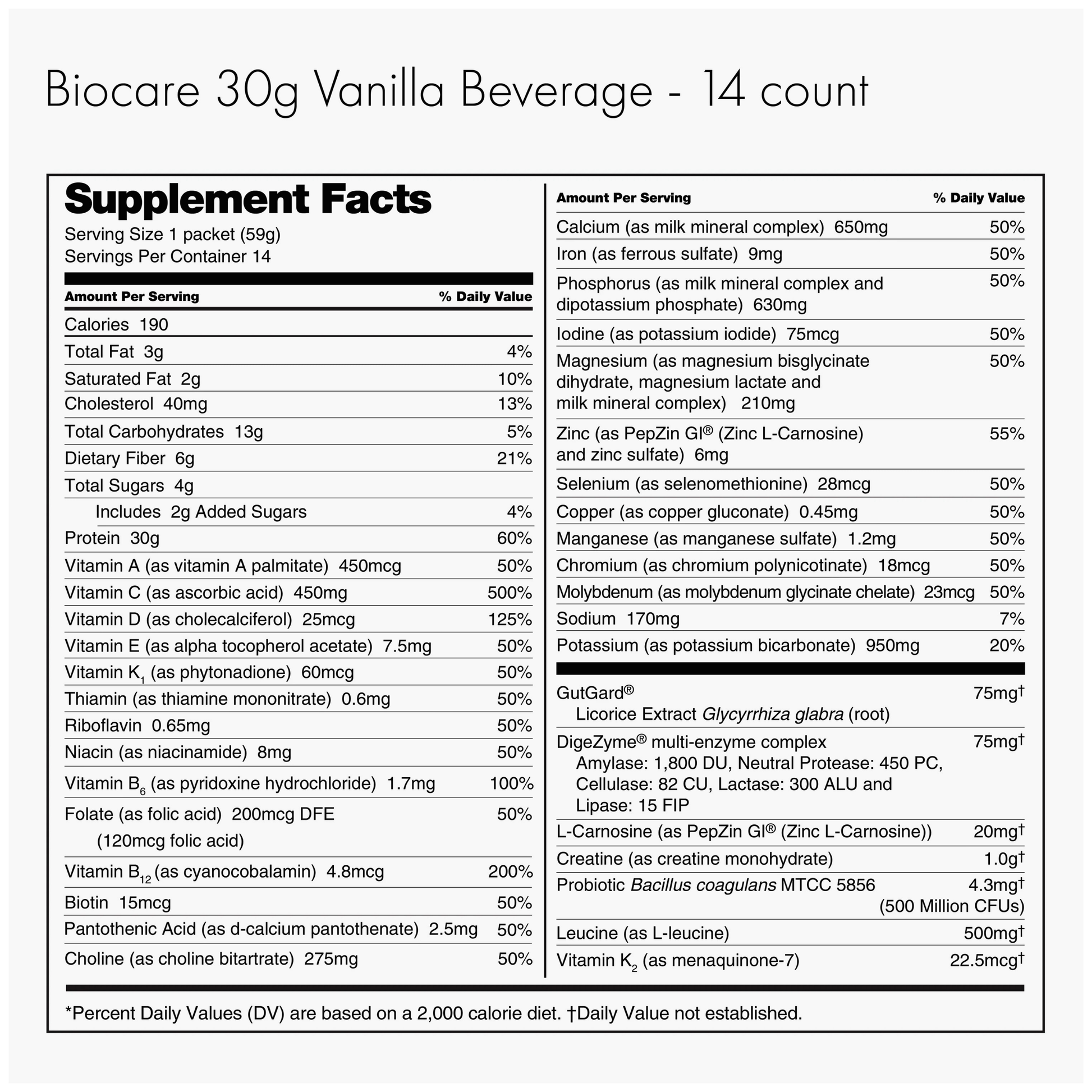 The Biocare dietary beverage comes in a powder form that emulsifies in water. Enjoy this creamy vanilla beverage on the go with 14 convenient packets per box. No measuring needed. Simply rip open the packet, empty the powdered contents into a shaker bottle (or 7 ounces of cold water), shake/stir to mix, and enjoy! Add ice if desired!