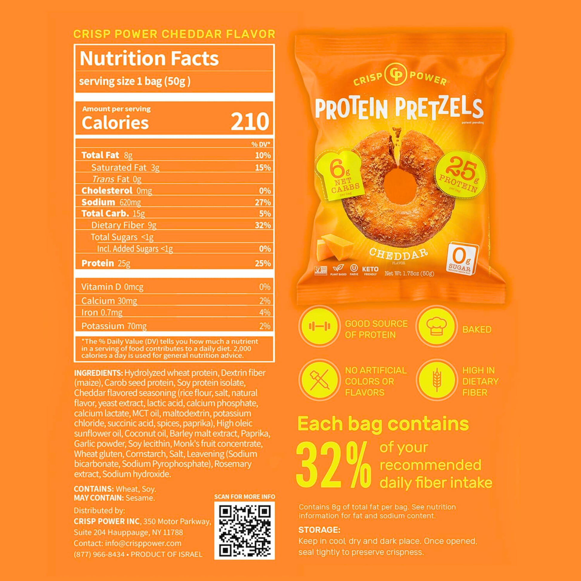 Crisp Power Protein Pretzels - Cheddar - 6 Bags
