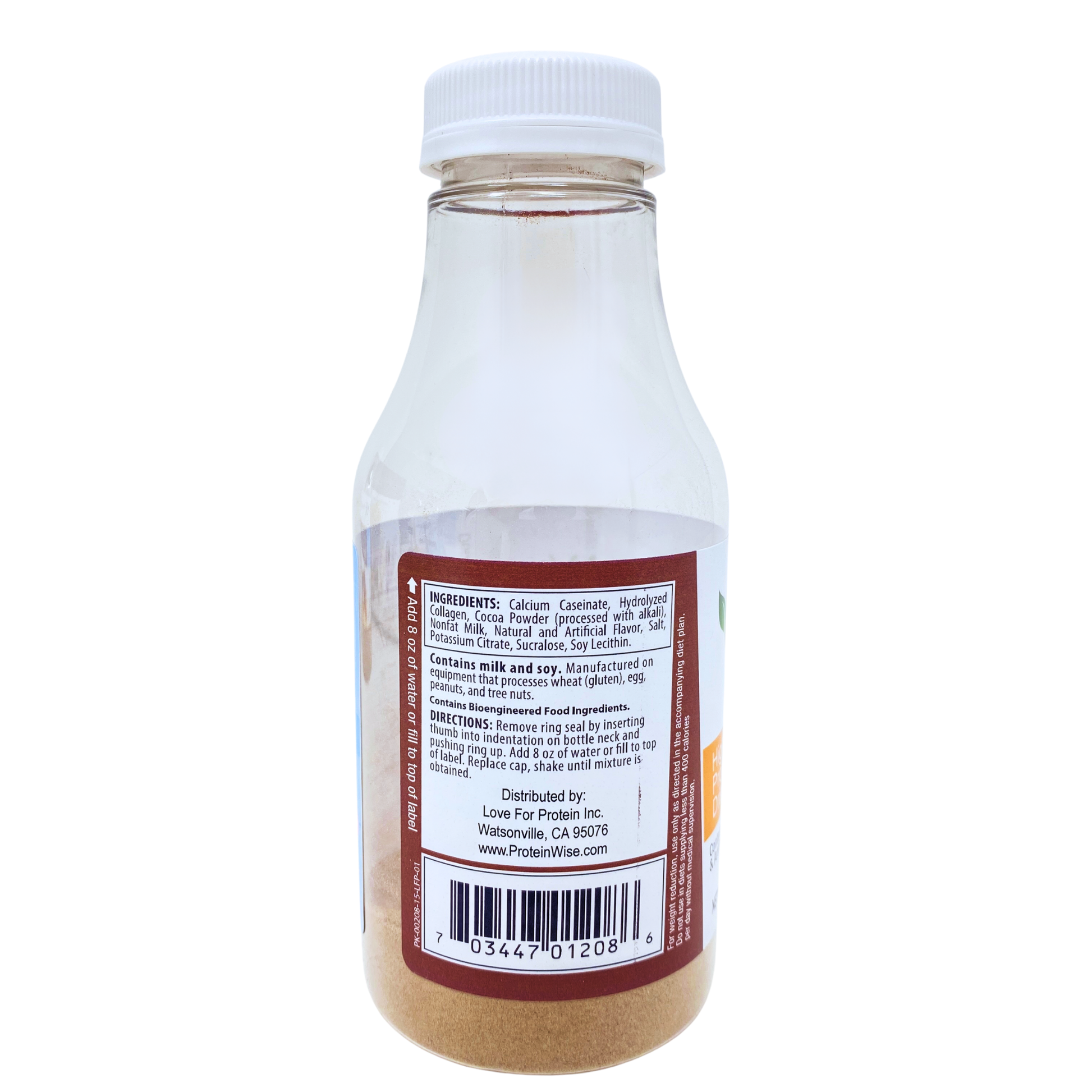 Calcium Caseinate, Hydrolyzed Collagen, Cocoa Powder (Processed with alkali), Non Fat Milk, Natural and Artificial Flavor, Salt, Potassium Citrate, Sucralose, Soy Lecithin.