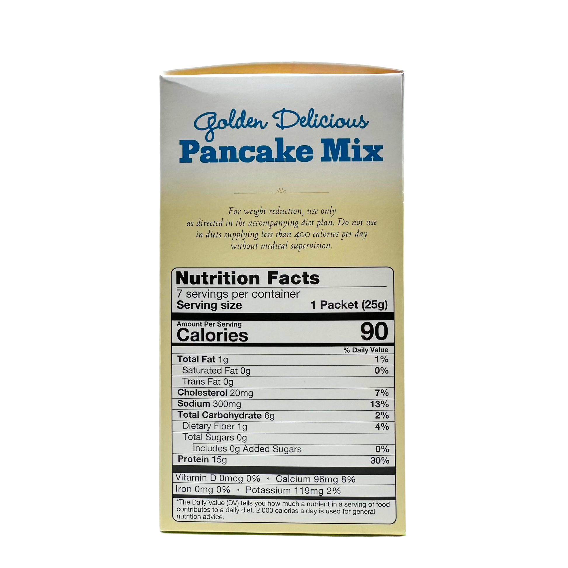 Who said being on a weight loss plan has to be boring? With our irresistible tasting Golden Delicious Pancake Mix you can enjoy this breakfast delight whenever you like. The best part is that each serving has 15 grams of protein, 90 calories, and 5 net carbs all in just one delicious pancake! Top it with your favorite sugar free, fat free syrup and you can't go wrong. Get an energizing start to your day with Proteinwise Golden Delicious Pancakes. They are simply the best way to enjoy your low-carb diet.