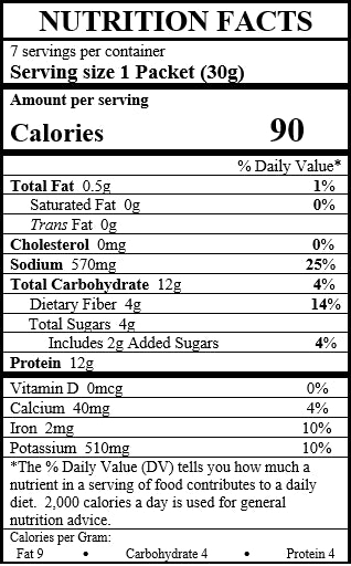 Soy Protein Concentrate, Tomato Powder, Soy Protein Isolate, Dehydrated Onions, Cornstarch, Salt, Maltodextrin, Natural Flavor, Sugar, Dextrose, Yeast Extract, Spices, Garlic Powder, Malt Extract, Chili Pepper, Guar Gum, Dehydrated Bell Peppers, Modified Food Starch, Paprika, Citric Acid, Molasses, Fructose, Disodium Inosinate and Disodium Guanylate, Dried Tomato, Ground Garlic, Dried Onion, Potassium Citrate, Corn Syrup, Caramel Color, Tamarind, Vinegar, Brown Sugar, Sucralose, Extractive of Paprika, Red #40.