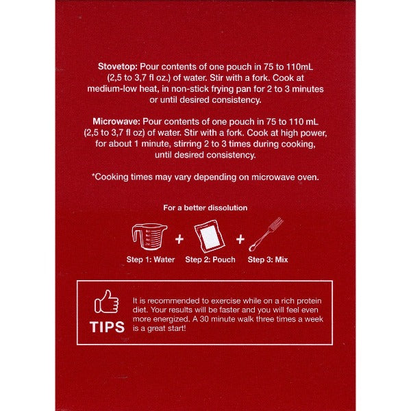 Cook it in a skillet or the microwave. For added nutrients and consistency, simply add an egg white and your choice of mushrooms or other vegetables. Enjoy!