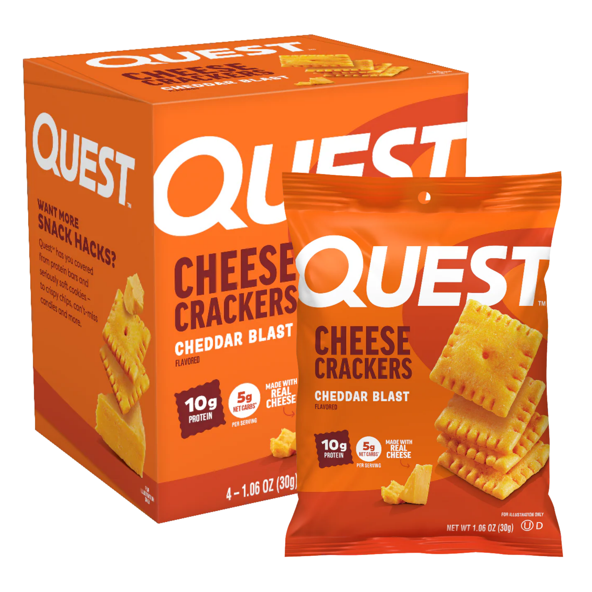 Looking for a healthier version of Cheese Nips? Quest Cheese Crackers provide all the crunch and satisfying taste you are looking for in a cheese cracker, but these are packed with 10g of protein and only 5g of net carbs per serving. These high protein, low carb protein crackers are bursting with real cheese flavor and have the kind of crunch you crave in a snack cracker.
